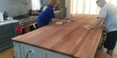 Several hours of meticulous hand sanding and applied 1 gallon of Food Save Oil.