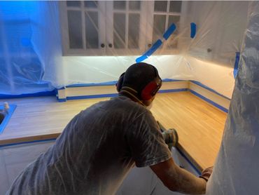 (Different Business we do Everyday) A Sanding Project Corona del Mar. A Flat Grain Walnut Mfg / and Install by CA Lic GC.